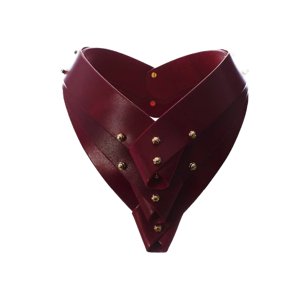 Diese Halsband Turned signiert Una Burke aus Merlot-Leder ist ein rockig-schickes Stück, das einen Hauch von Bondage zu jedem Outfit passen. Diese Halskette wird sorgfältig aus gefalteten Paneelen und Streifen aus ölhaltigem, pflanzlich gegerbtem Leder hergestellt, die fein zusammengefügt werden, um einen schicken und zugleich avantgardistischen Stil zu formen. Feminin, aber stark, kann dieses Stück mit den einfachsten Outfits getragen werden, um ein tolles Statement zu setzen.